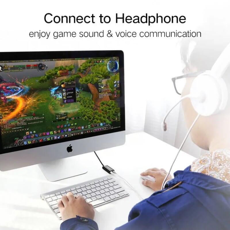 1.Input: HDMI IN (4K@60Hz Max) 2.Capture port: USB-C+A (1080P@30Hz) 3.USB-C+A: theoretical transfer speed of USB 2.0 is 480Mbps 4.Sampling rate: 24bit/48KHz 5.SNR: ≥90dB 6.THD: <-80dB 7.Operating systems: Windows 8.1/ 10/macOS/Linux/Android 5.0 and higher 8. Compatible