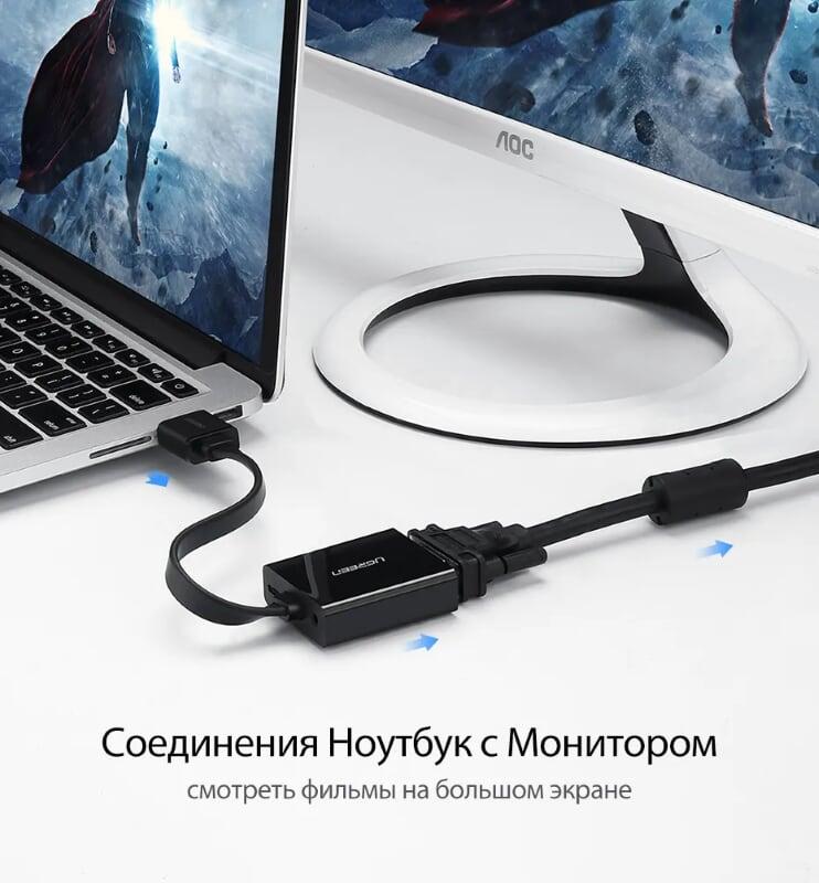- Bộ Chuyển Đổi Ugreen HDMI Sang VGA Audio Cáp Tròn Có Nguồn Phụ 40253 giúp kết nối máy tính xách tay, Macbook, Chromebook, Rasberry Pi với giao diện HDMI để chiếu, hiển thị, màn hình