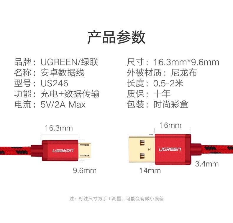 Ugreen 60146 1m micro usb 2.0 data cable aluminum case us290 1. Length : 1M 2. Color : Black 3. USB Version : 2.0 4. Charger + Data Transfer Link Cable USB 2.0 5. 100