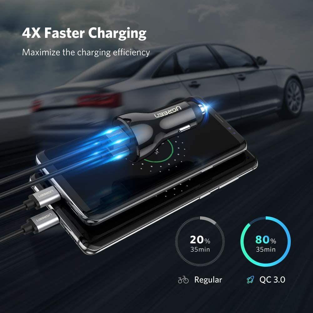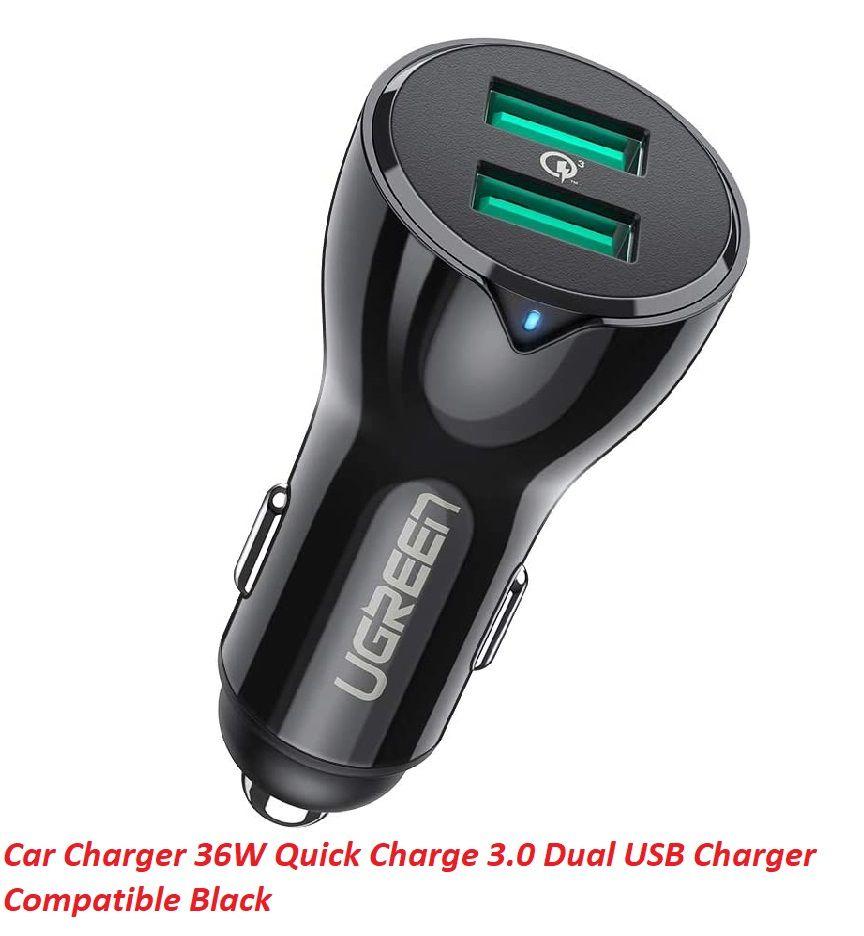 ✨Ugreen UG40726CD163TK QC3.0 sạc xe 2 cổng USB chuẩn quick charge 3 màu đen - HÀNG CHÍNH HÃNG