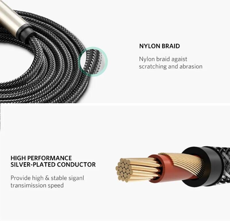 1. Cáp mạng Cat8 đúc sẵn bọc dù Ugreen băng thông ổn định lên đến 2000MHz: Cáp ethernet UGREEN cat 8 hỗ trợ băng thông lên đến 2000MHz, đảm bảo tốc độ mạng ổn định