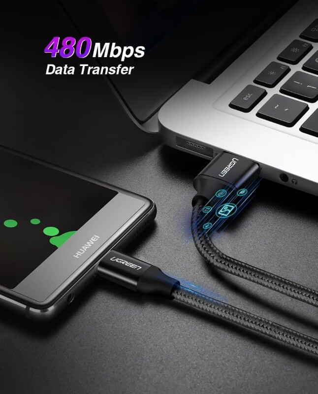 ✨Ugreen UG50566US279TK 0.5M 5A Cáp dữ liệu USB Type-C sang USB 2.0 màu đen - HÀNG CHÍNH HÃNG