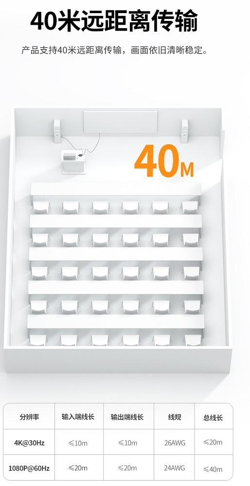 1.Phiên bản HDMI 2.0 2.4K/60Hz,3D, HDCP2.2,1080P 3.Đầu vào: 1 cổng HDMI 4.Đầu ra: 4 cổng HDMI 5. Hỗ trợ truyền đường dài 40m 1080P bằng cáp HDMI Cáp 6,3M 30AWG cho đầu vào và cáp