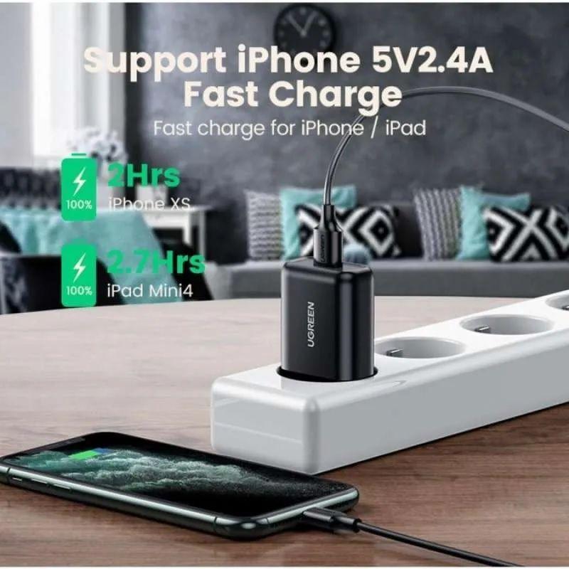 Ugreen 40715 Qc3.0 + Qc3.0 36W Dual Fcp Usb Charger Quick Charge White CD161 1. Input: 100-240V ~ 50 / 60Hz 1.2A 2. Max 2xQuick Charge 3.0 Output: 5V / 3A 9V / 2A 12V