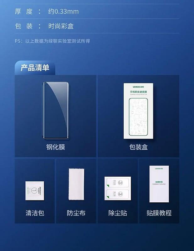 1. Brand : Ugreen 2. Name Protective Glass 3. Hardness : 9H 4. Thickness : 0.33mm 5. 20 x 10 x 5 cm 6. 200g