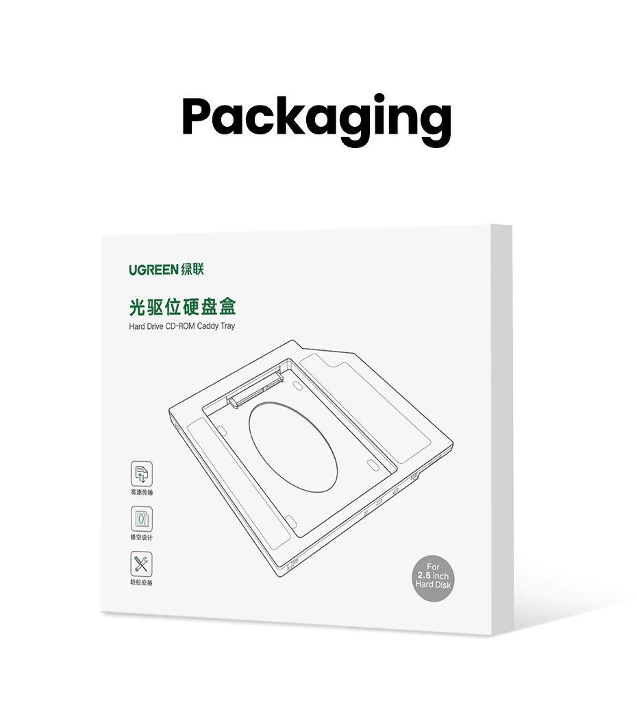 UGREEN HDD Caddy 9.5mm Universal SATA 3.0 HDD Caddy for 2.5" 5TB SSD Case Hard Disk Enclosure for Laptop DVD-ROM Optical Bay