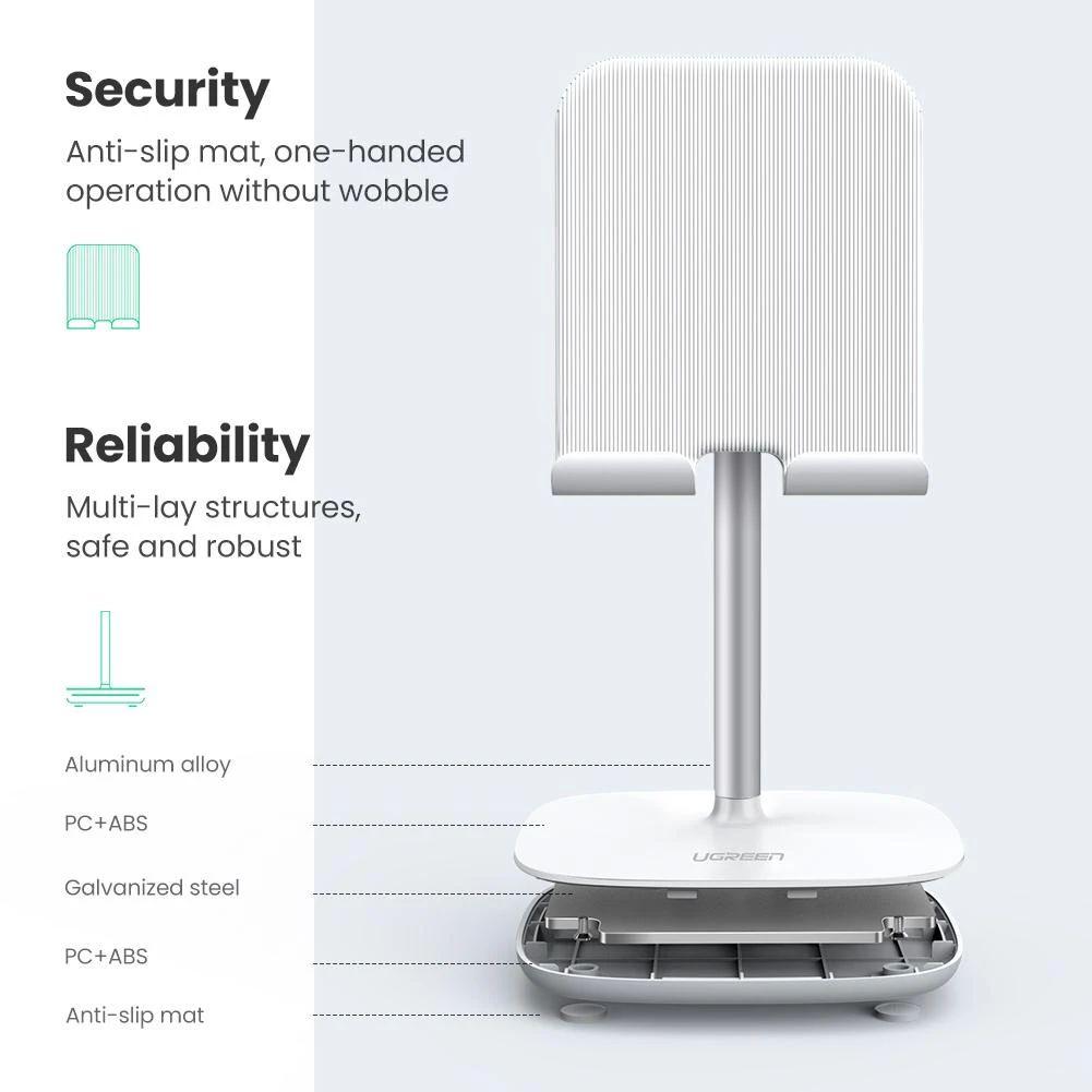 ✨Ugreen UG70976LP177TK xoay 45 độ Màu Trắng Giá đỡ điện thoại. máy tính bảng chất liệu kim loại - HÀNG CHÍNH HÃNG