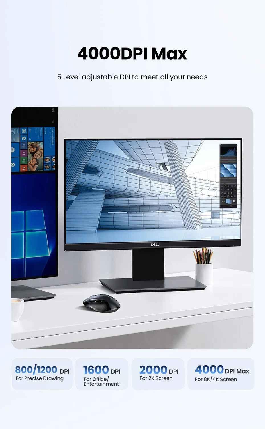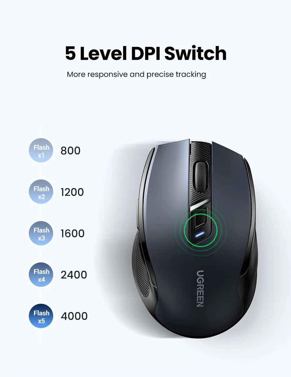 ✨Ugreen UG90855MU006TK 4000dpi 2.4Ghz Bluetooth Chuột không dây + Bluetooth Ergonomic Mouse không kèm pin AA - HÀNG CHÍNH HÃNG
