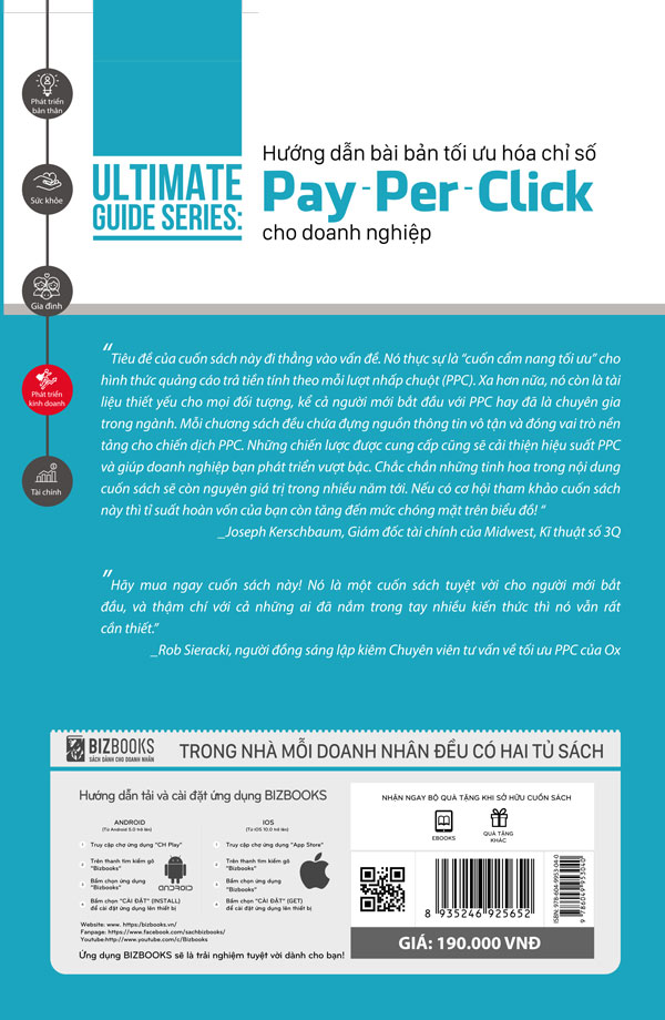 Cuốn sách Hướng dẫn bài bải tối ưu hóa chỉ số Pay - per - Click cho doanh nghiệp là tài liệu quan trọng để bạn: - Làm chủ các chiến thuật sử dụng công cụ tìm