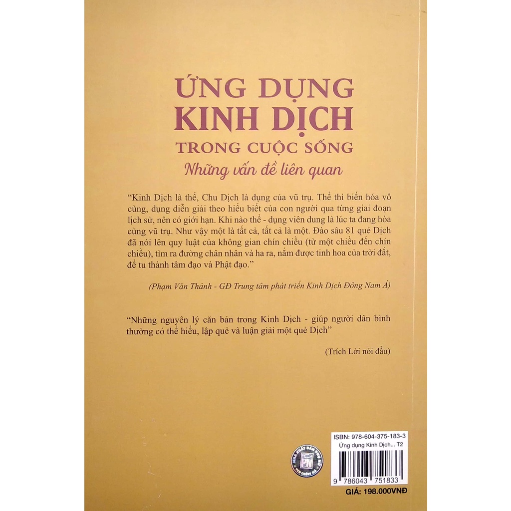Mua tại TiktokKinh Dịch là thể, Chu Dịch là dụng của vũ trụ. Thế thì biến hóa vô cùng, dụng diễn giải theo hiểu biết của con người qua từng giai đoạn lịch sử, nên có giới hạn. Khi nào thể - dụng viên dụng là lúc ta đang hòa cùng vũ trụ. Như vậy một là tất cả, tất cả là một. Đào sâu 81 quẻ Dịch đã nói lên quy luật của không gian chín chiều (từ một chiều đến chín chiều), tìm ra đường chân nhân và ha ra, nắm được tinh hoa của trời đất, để tu thành tâm đạo và Phật đạo.”