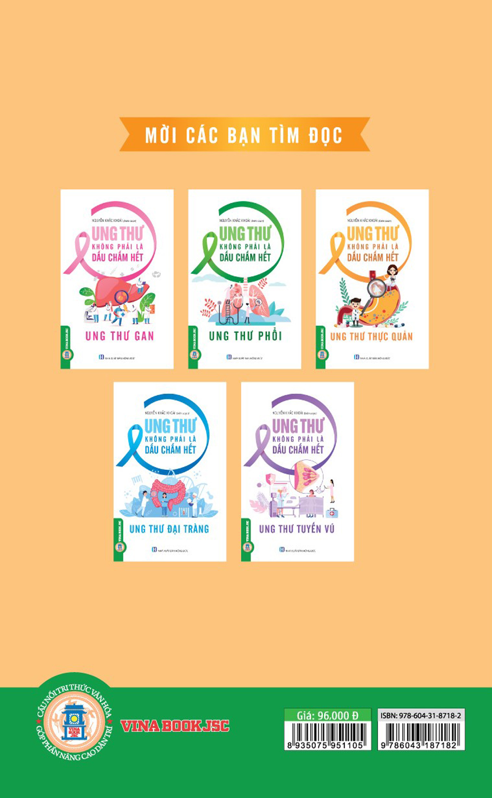 Bộ sách Ung thư không phải là dấu chấm hết gồm 5 quyển. Mỗi quyển là một sự tìm hiểu mỗi chứng bệnh ung thư khác nhau: Gan, Phổi, Thực quản, Đại tràng, tuyến vú;