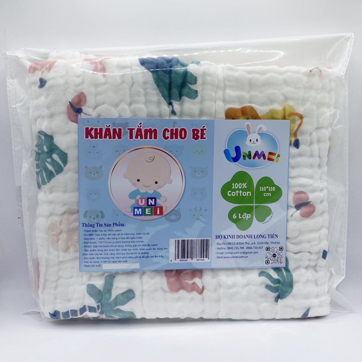 - Khăn tắm cho bé có họa tiết rất dễ thương và đáng yêu Sau khi sử dụng không bị khô cứng, thô ráp, không gây trầy xước và tổn hại đến làn da của bé Unmei Trading cam kết: