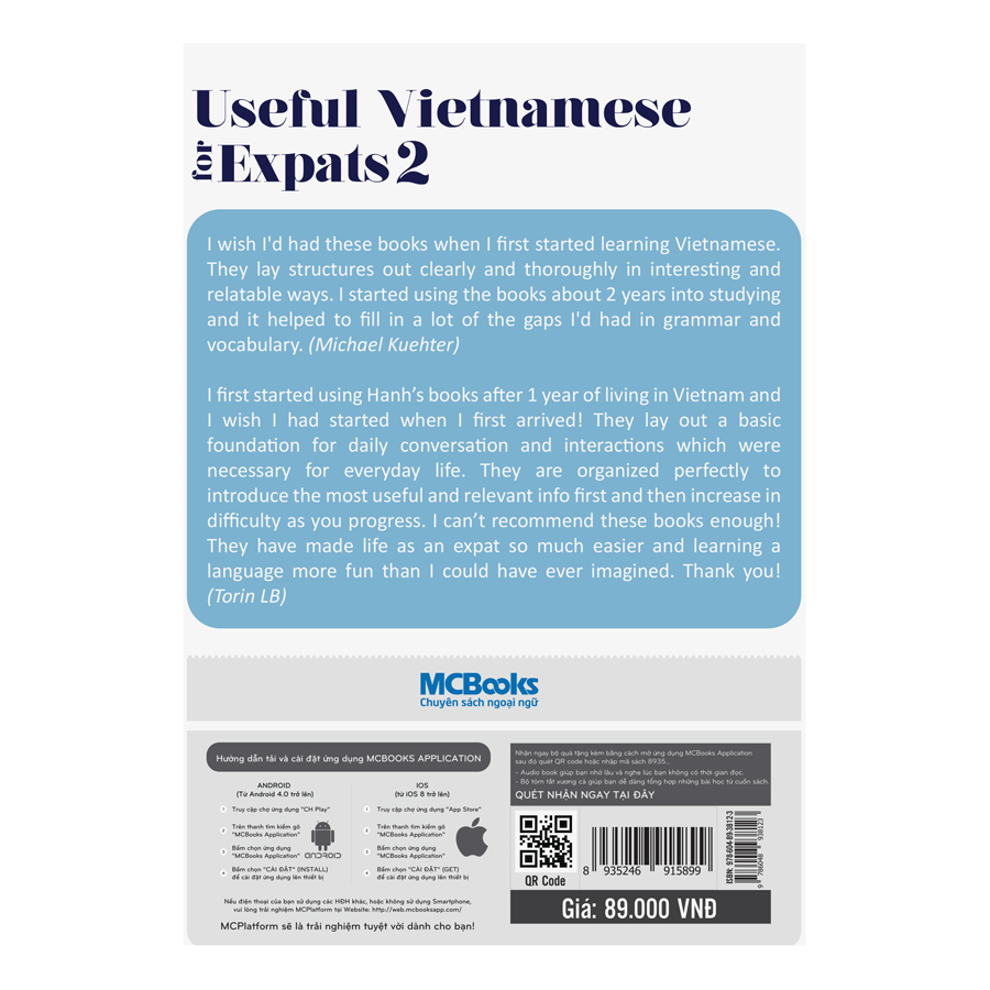 Đối với người nước ngoài đang sinh sống và làm việc tại Việt Nam, để thuận tiện trong giao tiếp sinh hoạt hàng ngày hay trong công việc, việc thích nghi và sử dụng ngôn ngữ tiếng Việt một cách trôi chảy là điều cần thiết. Cuốn sách Useful Vietnamese English for Expats - 1 là phương tiện giúp người nước ngoài từng bước tiếp cận và sử dụng tiếng Việt căn bản như một ngôn ngữ thứ hai.