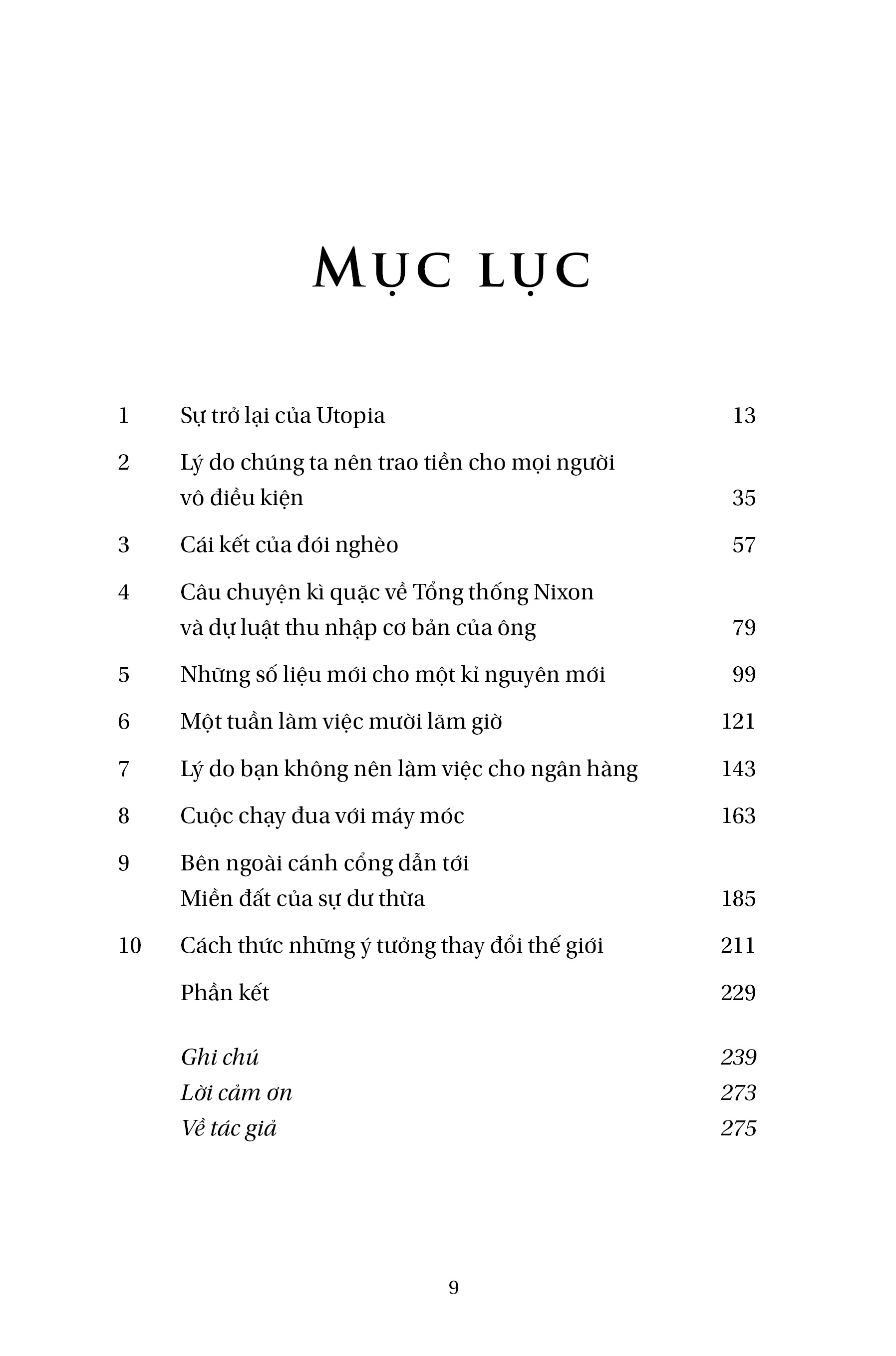 Những quan điểm mới của tác giả - nhà sử học xuất sắc nhất châu Âu hiện nay Tác giả: Rutger Bregman Rutger Bregman là nhà tư tưởng thế hệ mới, quan điểm lí luận của anh đã phá vỡ hệ tư tưởng nặng nề tồn tại suốt 40 năm qua, đồng thời cũng phá vỡ quỹ đạo cuộc sống xã hội ngột ngạt hiện tại. Những quan điểm lí luận đó được thể hiện rõ nét trong Utopia – Hành trình xây dựng xã hội với tầm nhìn xa. Trong cuốn sách này, Rutger Bregman đã phân tích, lí giải hàm ý của Utopia, thuật lại quá trình nảy sinh ra tư tưởng Utopia trong lịch sử và cả ý nghĩa tích cực cũng như tính tất yếu của xã hội. Nghèo đói, bất công, những điều này đều khơi dậy khao khát của con người đối với “Miền đất của sự dư thừa” (The Land of Plenty), đồng thời nỗ lực hết mình để đạt được điều đó. Trong thực tiễn chính trị xã hội hiện đại cũng tồn tại một vài trải nghiệm mang màu sắc Utopia, ví như “Dự luật thu nhập cơ bản” của cựu tổng thống Mỹ Richard Nixon. Quan niệm dẫn dắt hành động, và nếu chúng ta kiên trì thực hiện hành động trong thời gian dài thì nó sẽ trở thành hiện thực. Đây cũng chính là ý nghĩa của Utopia. Bregman chỉ ra rằng, muốn thay đổi thế giới, chúng ta phải có những suy nghĩ “không tưởng” mang tầm nhìn xa, những suy nghĩ mà trong thời đại chúng ta sống bị đánh giá là viển vông. Trước đây những người đề xướng ra chế độ bãi bỏ nô lệ, chế độ đề cao nữ quyền… cũng từng bị cho là “mất trí”, nhưng sau đó lịch sử đã chứng minh quan điểm của họ là đúng đắn, có tầm nhìn xa trông rộng. Và ở đây, Bregman đã đề xướng ra ba ý tưởng “kì lạ”: 1. Mỗi người dân đều có thu nhập cơ bản để đảm bảo cuộc sống tối thiểu mà không cần điều kiện đi kèm. 2. Rút ngắn thời gian làm việc xuống còn 15 giờ mỗi tuần. 3. Mở cửa biên giới các nước để người dân có thể tự do đi lại bất cứ nơi nào họ muốn. Ngày nay, khi khoảng cách giàu nghèo, khoảng cách giữa công việc lý tưởng và công việc thực tế ngày càng bị kéo dãn, thì ba ý tưởng này đã sắp xếp lại nguồn lực của từng cá nhân, của xã hội và của cả thế giới. Vấn đề thu nhập cơ bản cho toàn dân không còn là giấc mơ, mà trở thành thực nghiệm xã hội đang được tiến hành tại một số quốc gia tiến tiến ở châu Âu, trong cuốn sách cũng đưa ra các ví dụ điển hình đã thực hiện thành công (như Canada, Phần Lan, Hà Lan, Thụy Sỹ) Đối diện với sự biến động và bất công của thế giới hiện tại, khi mà chính phủ hoặc các chính đảng cũng không thể hứa hẹn hay đảm bảo tương lai cho người dân, thì Bregman dẫn dắt độc giả đến với luồng tư tưởng mới: Phát triển là gì? Tiến bộ là gì? Giá trị đích thực của cuộc sống là gì? Cuốn sách đã tạo ra một sức ảnh hưởng vô cùng lớn lao, Rutger Bregman không chỉ làm dấy lên làn sóng dư luận liên tục và lâu dài trong giới truyền thông, mà còn thúc đẩy các hoạt động rộng khắp Hà Lan nhằm thực hiện quan điểm mà anh đưa ra trong cuốn sách. Cuốn sách nói với chúng ta rằng bắt đầu từ những hành động nhỏ, chúng ta có thể từ từ thay đổi được thế giới. Cuốn sách cũng nói rằng ước mơ là một điều rất kì diệu, nó ẩn chứa sức mạnh thay đổi thế giới, dẫu cho nó có hoang đường đến đâu. Cuốn sách còn nói bất kể bạn là ai, thuộc tầng lớp nào, bạn đều có thể biến những điều “không thể” thành điều ‘có thể”. Bởi những điều như thế đã từng xảy ra trong quá khứ nên chắc chắn nó hoàn toàn có khả năng sẽ xảy ra trong tương lai. Utopia – Hành trình xây dựng xã hội với tầm nhìn xa là tác phẩm tràn đầy nhiệt huyết của một nhà sử học tài hoa, là ngôn ngữ đầy lương tri trong xã hội còn nhiều bất cập. Với phong cách viết sống động, linh hoạt, với các luận chứng, luận cứ xác đáng, đầy sức thuyết phục và với tư tưởng sắc bén, nhanh nhạy, Rutger Bregman đã tiến hành quan sát và phân tích những vấn đề trọng đại về sự phát triển của xã hội cũng như tương lai của nhân loại một cách hết sức mộc mạc mà thực tế. Cuốn sách nhận được đánh giá cao từ giới học thuật, giới trí thức, cũng như giới xuất bản – truyền thông. Đồng thời cuốn sách còn nhận được sự khẳng định và những lời giới thiệu rất nhiệt tình đến từ các học giả, tác giả đi trước. Điều này không hề khó hiểu bởi Rutger Bregman đã viết sách với quan điểm mới mẻ, lập trường sắc bén, văn phong độc đáo, cùng với đó còn bao hàm tinh thần chủ nghĩa lí tưởng và thái độ của chủ nghĩa hiện thực phê phán. “Cuốn sách này không nỗ lực để dự đoán tương lai mà đang nỗ lực để mở khóa tương lai, để khai mở tâm trí của chúng ta.” Và bởi thế, nếu bạn không muốn bị nhấn chìm trong công việc, nếu bạn muốn giành lấy chủ quyền cuộc đời mình, nếu bạn muốn nhìn