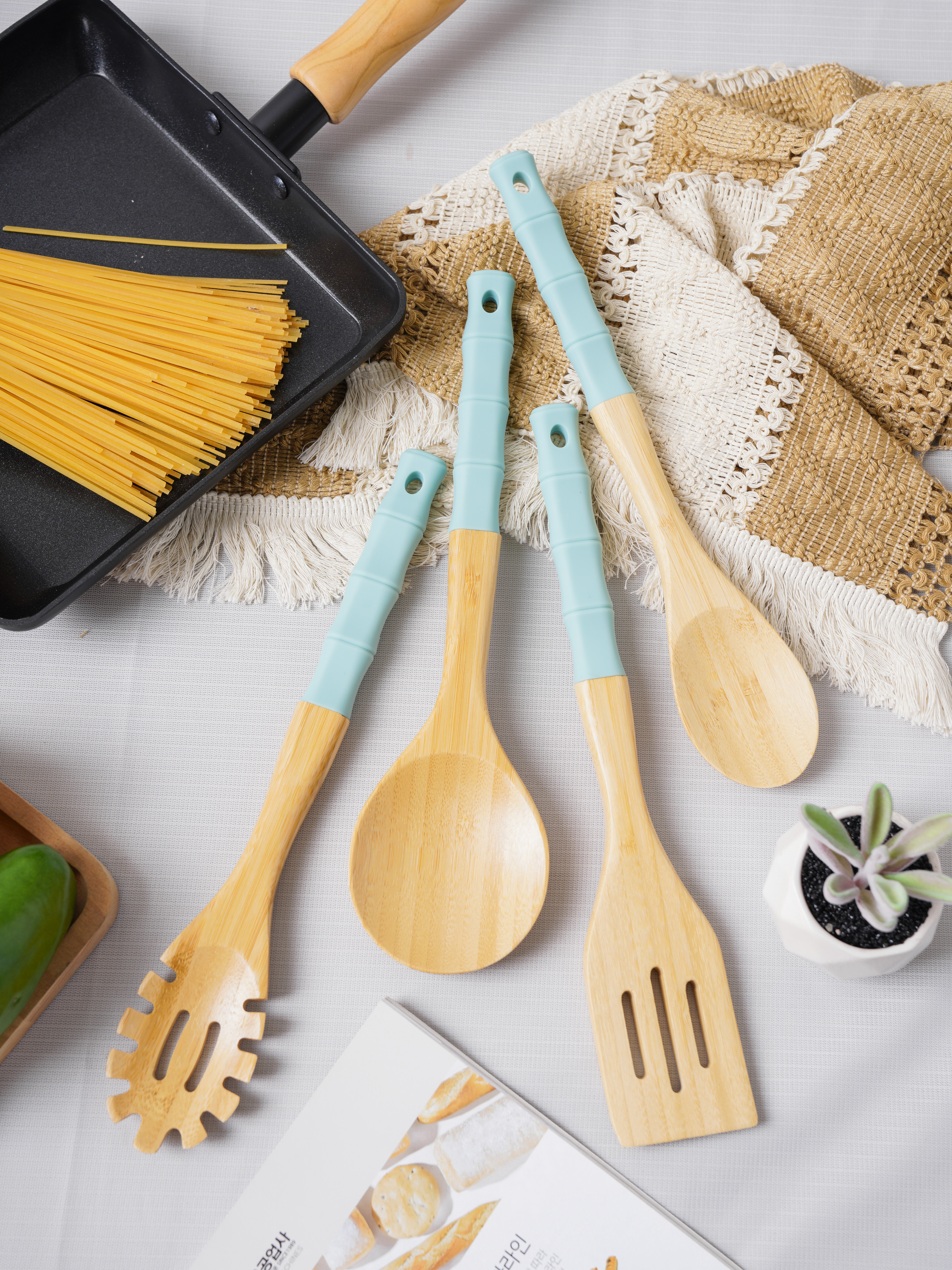 Thìa gỗ Spaghetti kích thước : 304x61x16 màu sắc : xanh da trời chất liệu : Silicone,bamboo