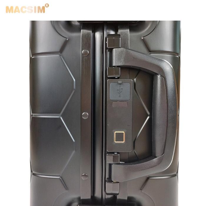 Toàn bộ thân vỏ vali Macsim làm bằng hợp kim nhôm A6063 làm cho vali rất nhẹ, độ đàn hồi cao, chống ăn mòn, chịu được tải trọng lớn.