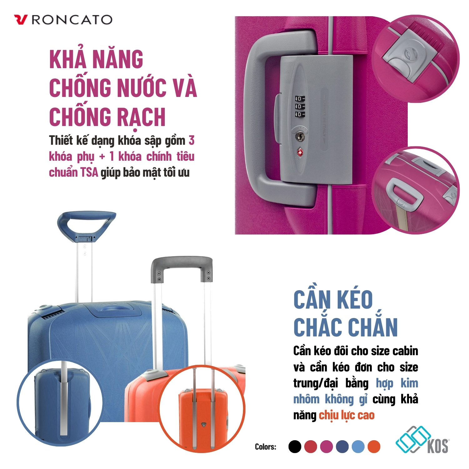 ✨Vali kéo du lịch RONCATO LIGHT - Vali khóa sập, Chống rạch, Chống nước, Thương hiệu Ý, Made in Italy
