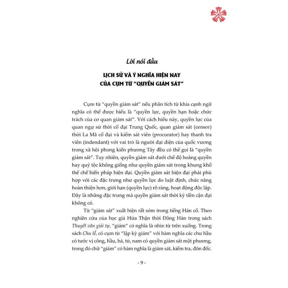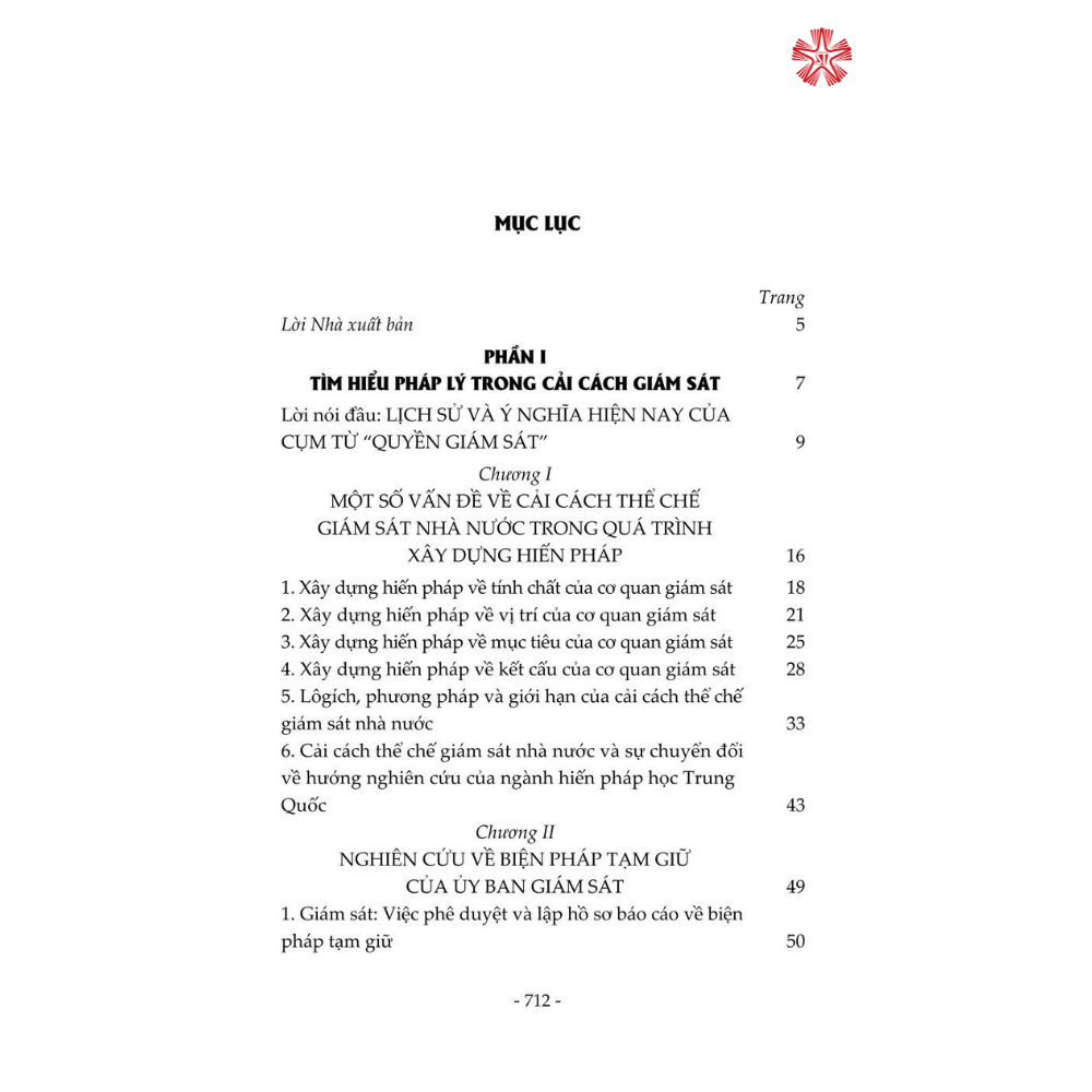 Mua tại TiktokCuốn sách được kết cấu gồm 5 phần, trình bày một cách toàn diện chế độ giám sát cũng như vấn đề xây dựng pháp luật Trung Quốc về giám sát từ hai góc độ lý luận và thực tiễn, đưa ra các giải pháp nhằm góp phần hoàn thiện thể chế giám sát của Trung Quốc. Đây là cuốn sách chuyên khảo có bố cục lôgích hoàn chỉnh và bối cảnh rõ ràng về cải cách thể chế giám sát của Trung Quốc, là tài liệu tham khảo bổ ích đối với các nhà nghiên cứu chuyên ngành luật cũng như đông đảo bạn đọc quan tâm đến chủ đề này.