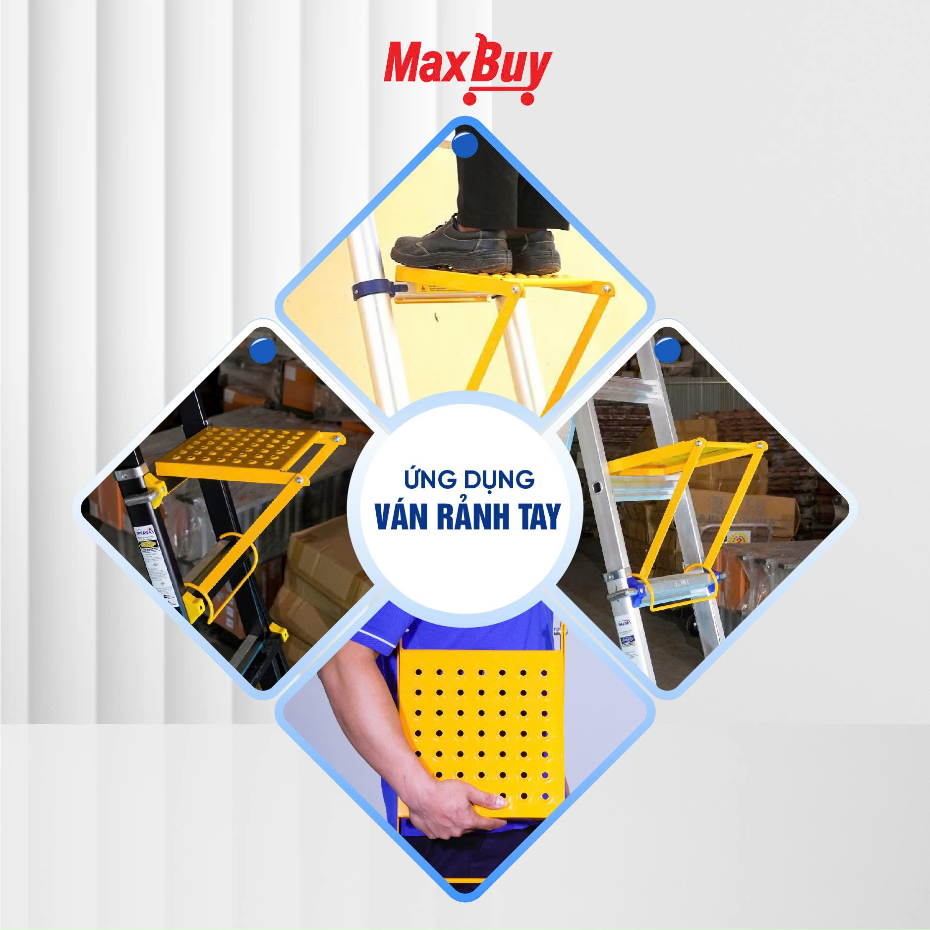 Tải trọng lên đến 150kg, bản bậc ván rộng rãi, mặt bậc chống trượt giúp bạn đứng vững và làm việc trên cao lâu mà không có cảm giác tê mỏi chân tay.