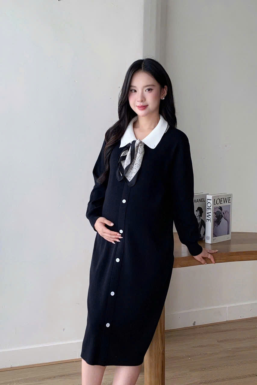 (SALE SỐC. GIẢM 70%) - Váy bầu suông đẹp thu đông chất liệu sợi bông cao cấp mặc đi dự tiệc chỉ 279k