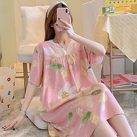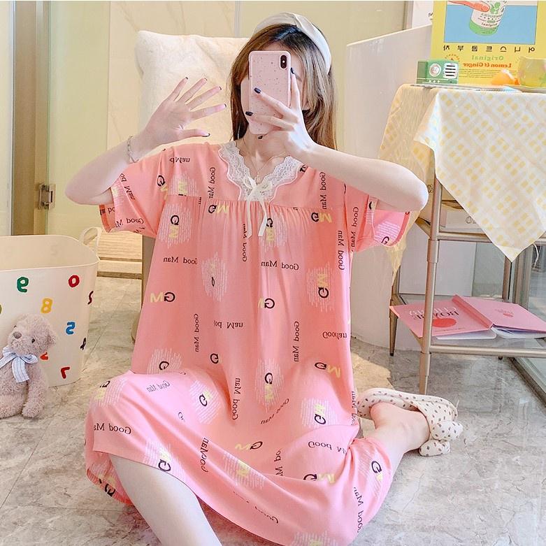 Váy ngủ ngắn tay phối ren vải Cotton đầm mặc nhà freesize mã VAV0338 . SĐT-ZALO 0971431592