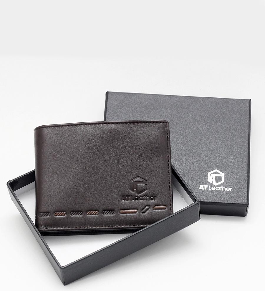 ✨Ví da bò nam cao cấp AT Leather 061 (11.5 x 10.5 cm) - Nâu