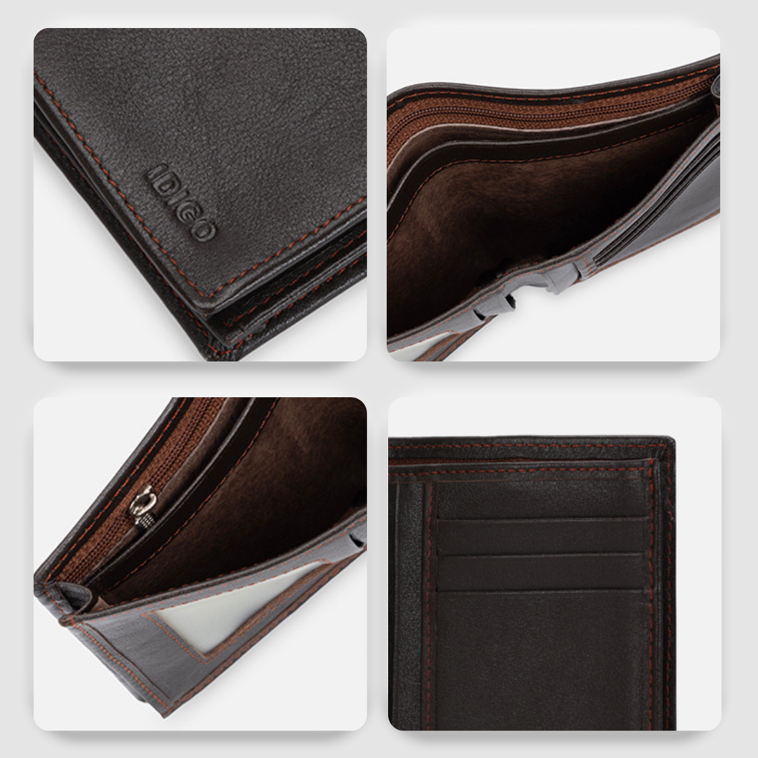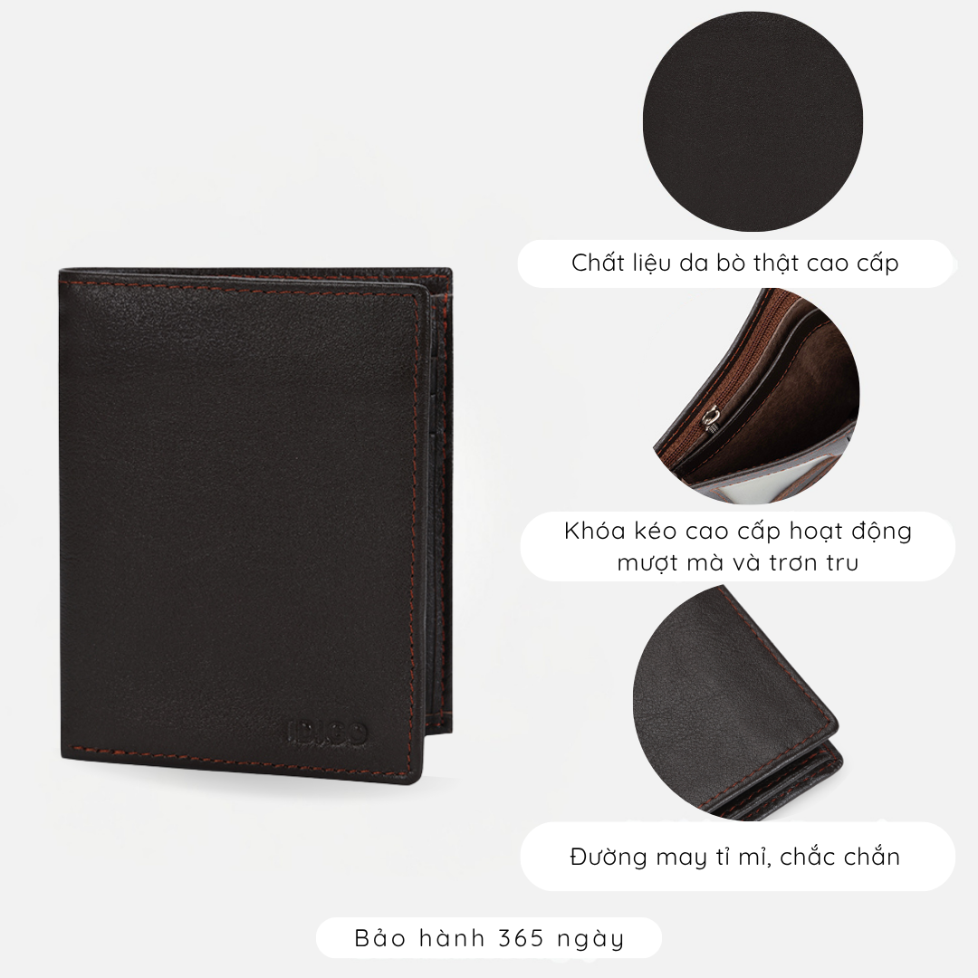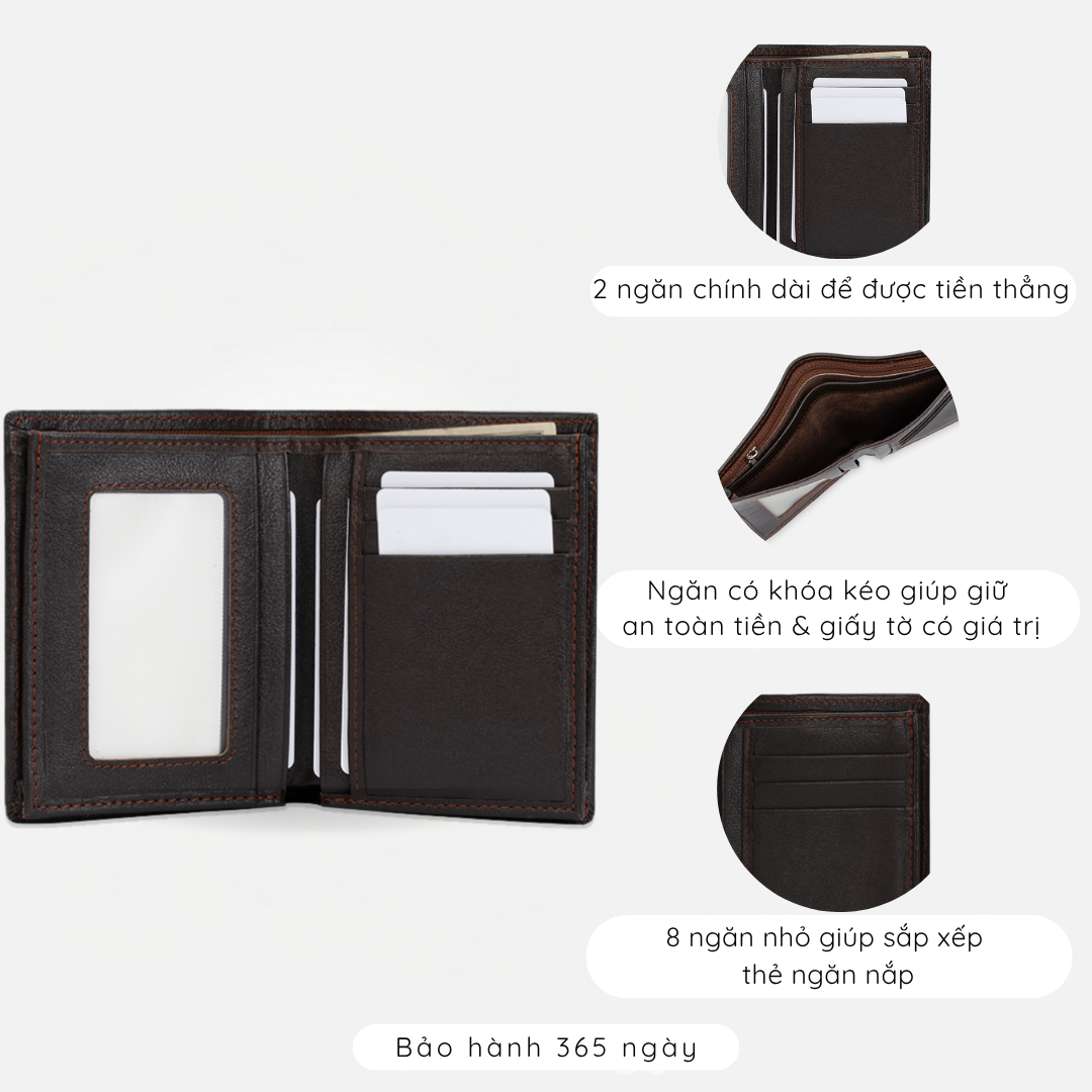 - Ví nam được làm bằng chất liệu da bò cao cấp tạo kiểu dáng lạ mắt, sang trọng. - Thiết kế nhỏ gọn, thời trang, dạng ví nam xếp đôi, có nhiều ngăn tiện