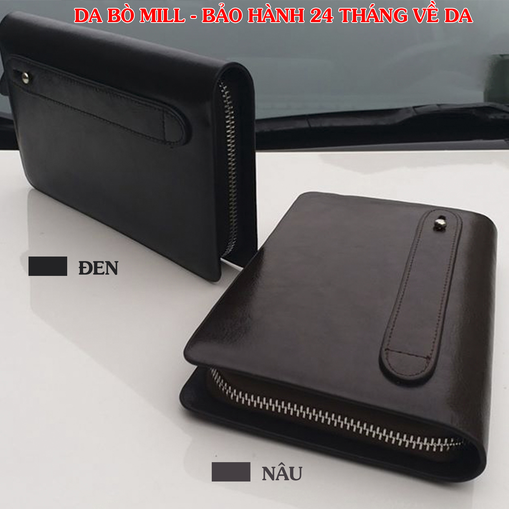 Ví nam cầm tay da bò mill cao cấp C104 Da thật BH 24 tháng