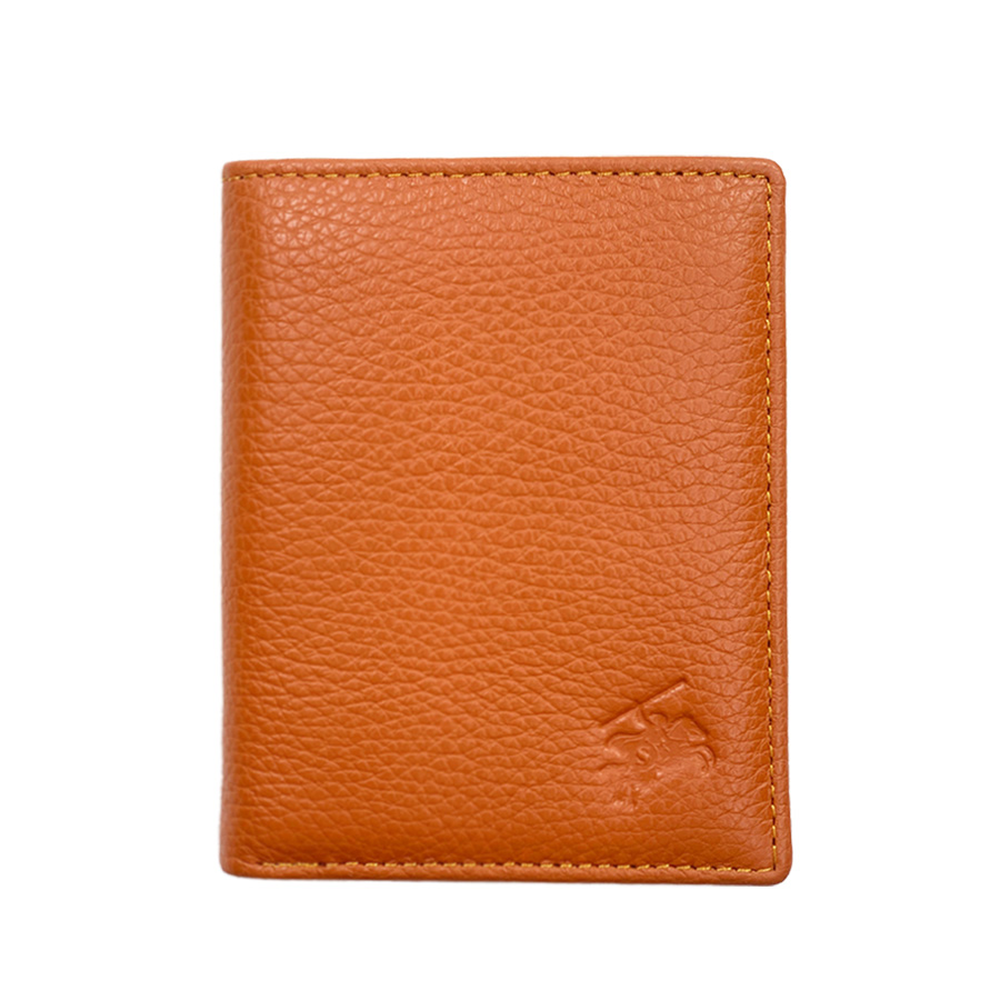 Mua tại Tiktok+ CHI TIẾT - 100% da bò tự nhiên - Chất liệu: Da bò Pebbled mềm mại - Màu da: Vàng cam - Kiểu dáng: Đứng – Gập 2 - Khóa kéo: Không - Kích