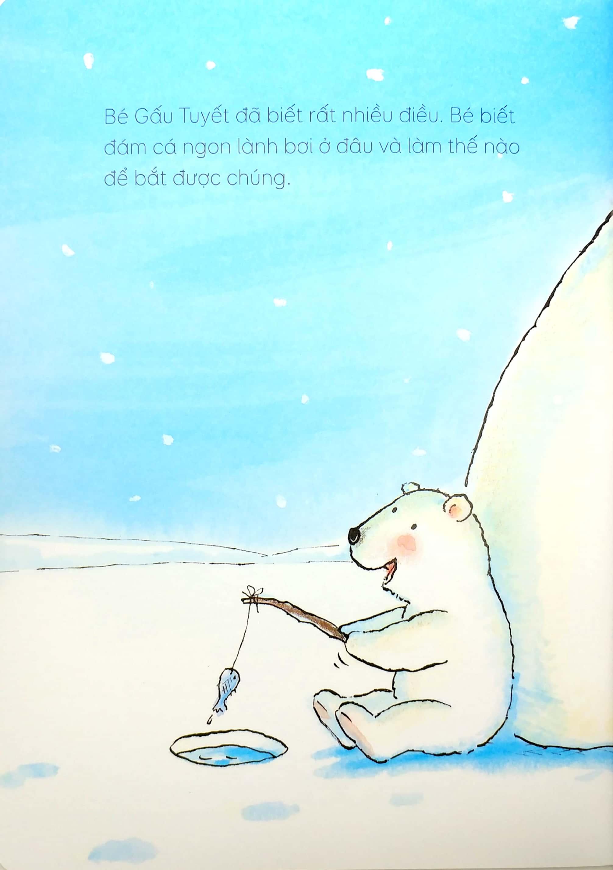 Bé Gấu Tuyết đã biết rất nhiều điều: đám cá ngon lành bơi ở đâu, bông tuyết có vị thế nào, gió có thể mơn man mà cũng có thể buốt táp, khi nào mặt trời nhô và khi nào mặt trăng ló. Bé cũng biết nếu ở cách mẹ bao xa thì dễ gặp nguy hiểm.