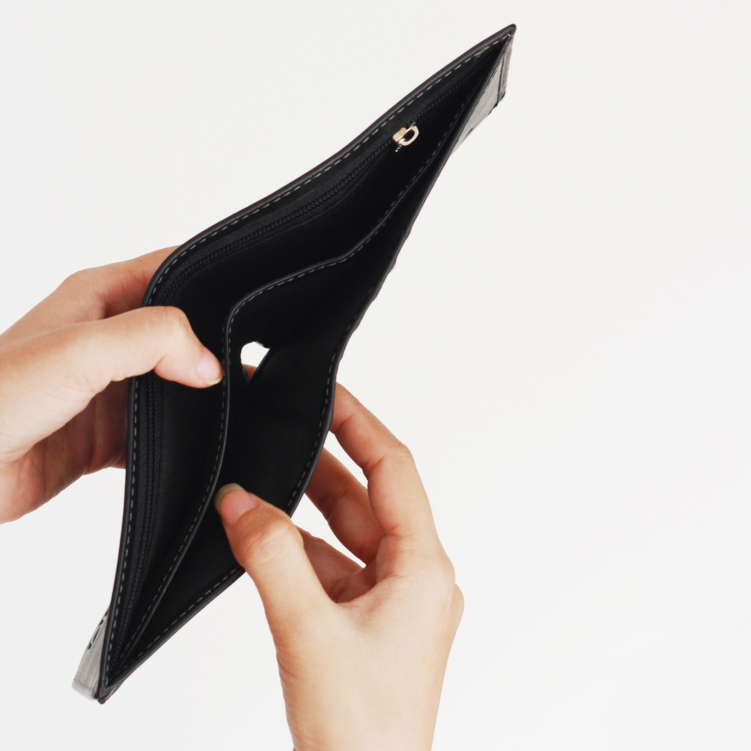 - Thiết kế gồm 2 ngăn lớn, 1 ngăn dây kéo cùng nhiều ngăn nhỏ đựng card, cmnd, hình ảnh, thẻ.