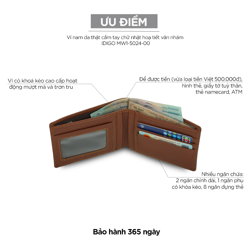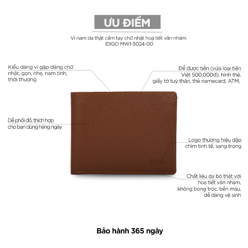 Những chiếc ví da nam dạng gập thường được cất giữ gọn trong túi xách, túi áo khoác hoặc trong túi quần, vừa dễ dàng bảo quản lại vừa dễ dàng sử dụng những lúc cần thiết. Để đổi mới so với những chiếc ví da thật với kiểu da trơn truyền thống, IDIGO đã cho ra mắt Ví nam da thật cầm tay chữ nhật hoạ tiết vân nhám IDIGO MW1-5024-00 được thiết kế với hoạ tiết vân nhám cùng phom chữ nhật truyền thống đảm bảo tính thời thượng và tiện ích cho chàng.
