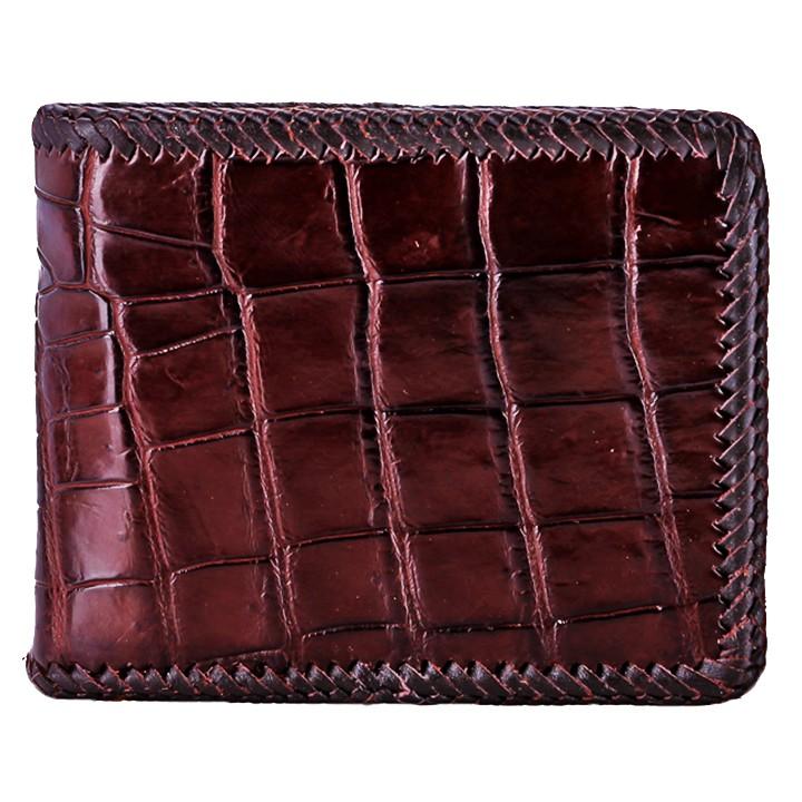 Bóp/Ví da cá sấu Huy Hoàng đan viền da bụng màu đen, nâu đất, nâu đỏ, vàng bò 2254-2711-2712-2713