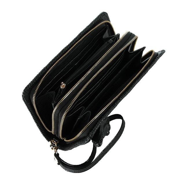 • Tên sản phẩm: Ví nữ da cá sấu Huy Hoàng nhiều ngăn đầu cá sấu đan viền màu đen HP3730