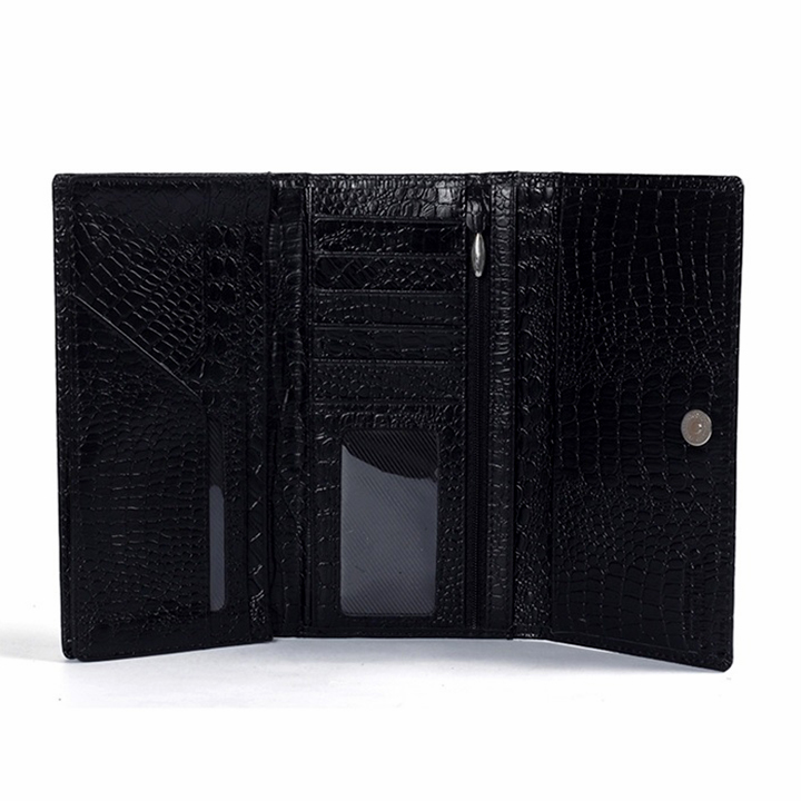 Ví/Bóp nữ Huy Hoàng da bò vân cá sấu 3 gấp màu đen 3106