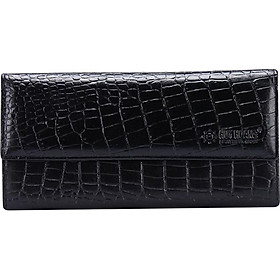 Ví/Bóp nữ Huy Hoàng da bò vân cá sấu 3 gấp màu đen 3106