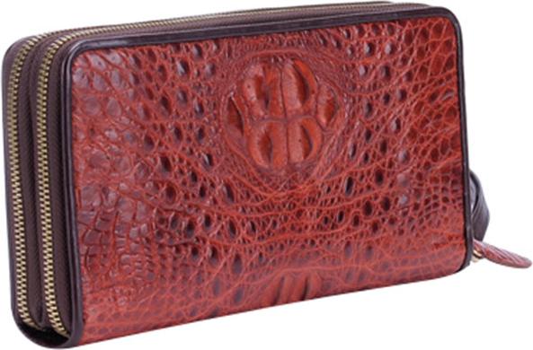 Ví/Bóp nữ da bò Huy Hoàng vân cá sấu lớn 3 gấp màu nâu đỏ 3169