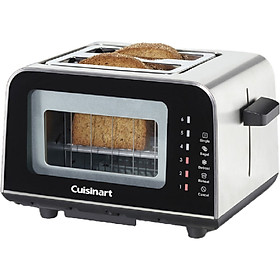 - Điểm đáng chú ý nhất trong thiết kế của Cuisinart CPT-3000HK là cả mặt trước và mặt sau được trang bị kính trong suốt. Nó cho phép người dùng quan sát được trạng thái bánh mì đang nướng. Hai tấm kính này có thể tháo rời nên rất thuận tiện cho việc vệ sinh. Ngoài ra, phần đế máy có khay hứng vụn bánh mì cũng tháo rời được.