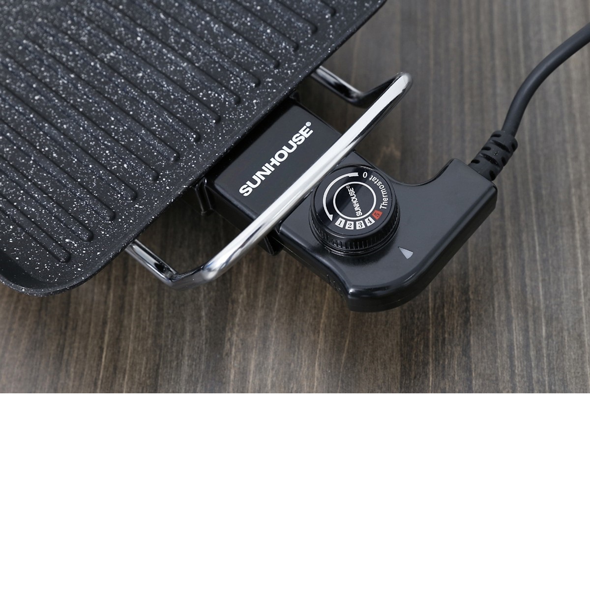 BẾP NƯỚNG ĐIỆN SUNHOUSE SHD4600 Bề mặt phủ chống dính đá hoa cương Whitford (USA) siêu bền kháng khuẩn Tay cầm cách nhiệt Bộ điều chỉnh nhiệt độ linh hoạt, nhiều chế độ Thông số