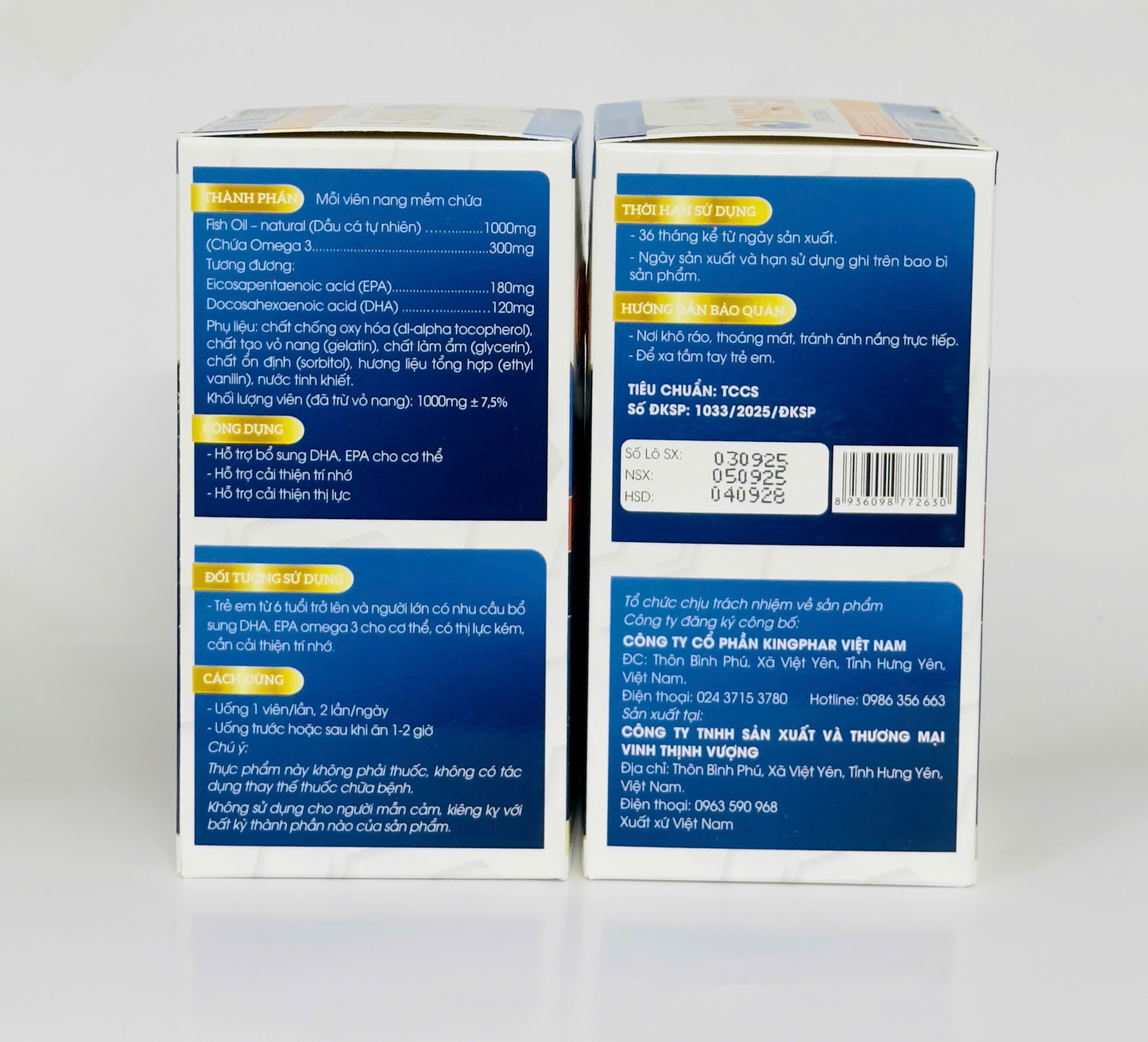 ✨Viên uống Dầu cá Omega 3 Kingphar 1000mg, lọ 60 viên, bổ mắt, bổ não