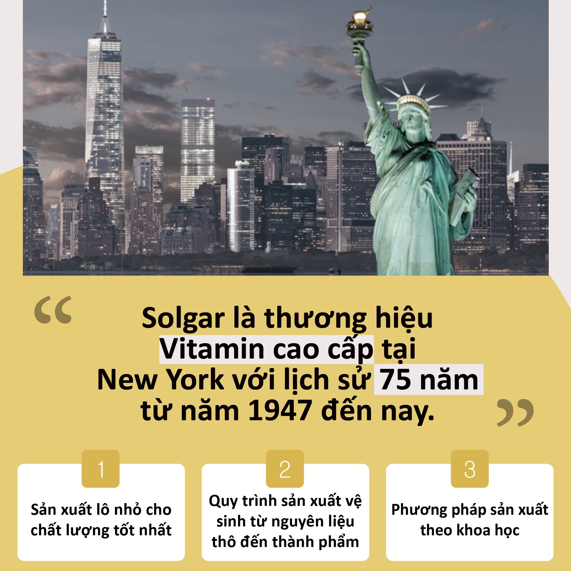 • Bảo quản: Nơi khô ráo, thoáng mát và tránh ánh nắng. Lưu ý: Sản phẩm này không phải là thuốc và không có tác dụng thay thế thuốc chữa bệnh. TIÊU CHUẨN VÀNG SOLGAR