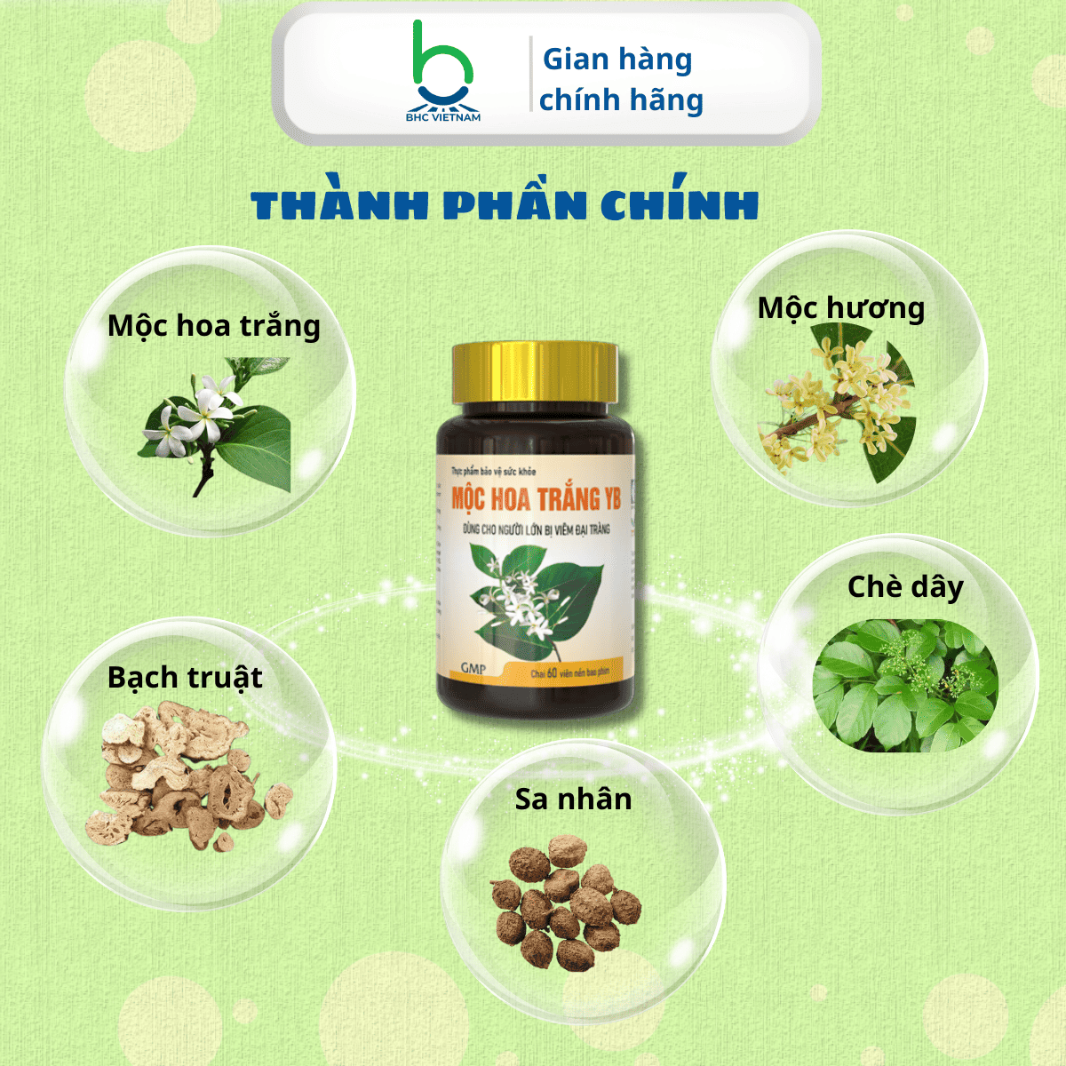Viên Uống MỘC HOA TRẮNG YB Hỗ Trợ Rối Loạn Tiêu Hóa, Viêm Đại Tràng - Lọ 60 viên Công dụng nổi bật Hỗ trợ giảm các triệu chứng rối loạn tiêu hóa như: đau