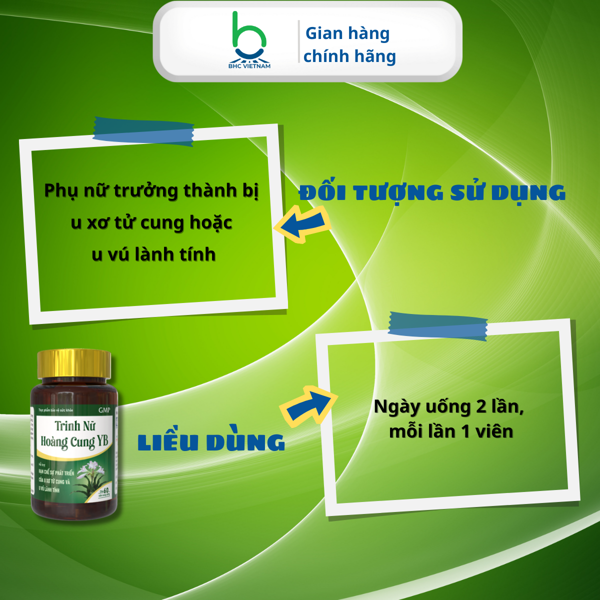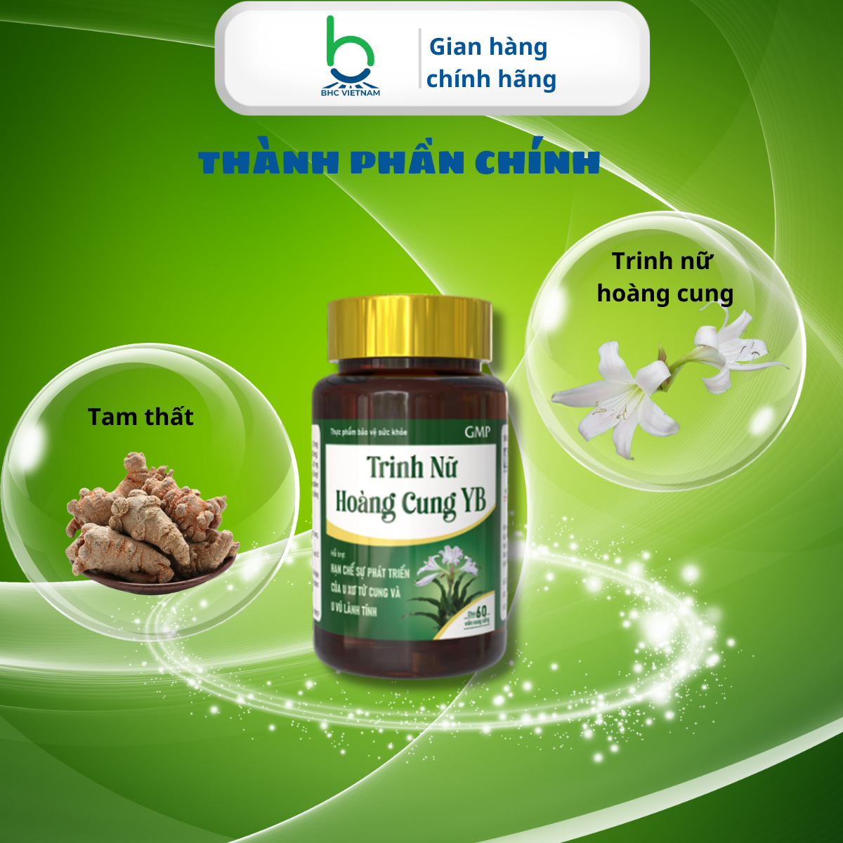 Viên Uống TRINH NỮ HOÀNG CUNG YB Hỗ Trợ Phụ Nữ Bị U Xơ Tử Cung và U Vú Lành Tính Quy cách đóng gói: Lọ 60 viên (viên nang cứng) Công dụng nổi bật: