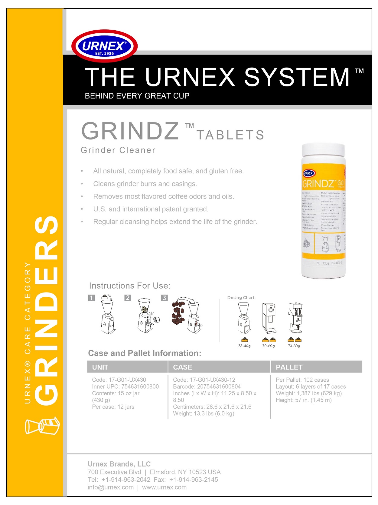 Giới thiệu Viên nén làm sạch máy xay Urnex GRINDZ – được pha chế từ tất cả các thành phần tự nhiên, có thể phân hủy sinh học và không chứa gluten giúp loại bỏ cặn