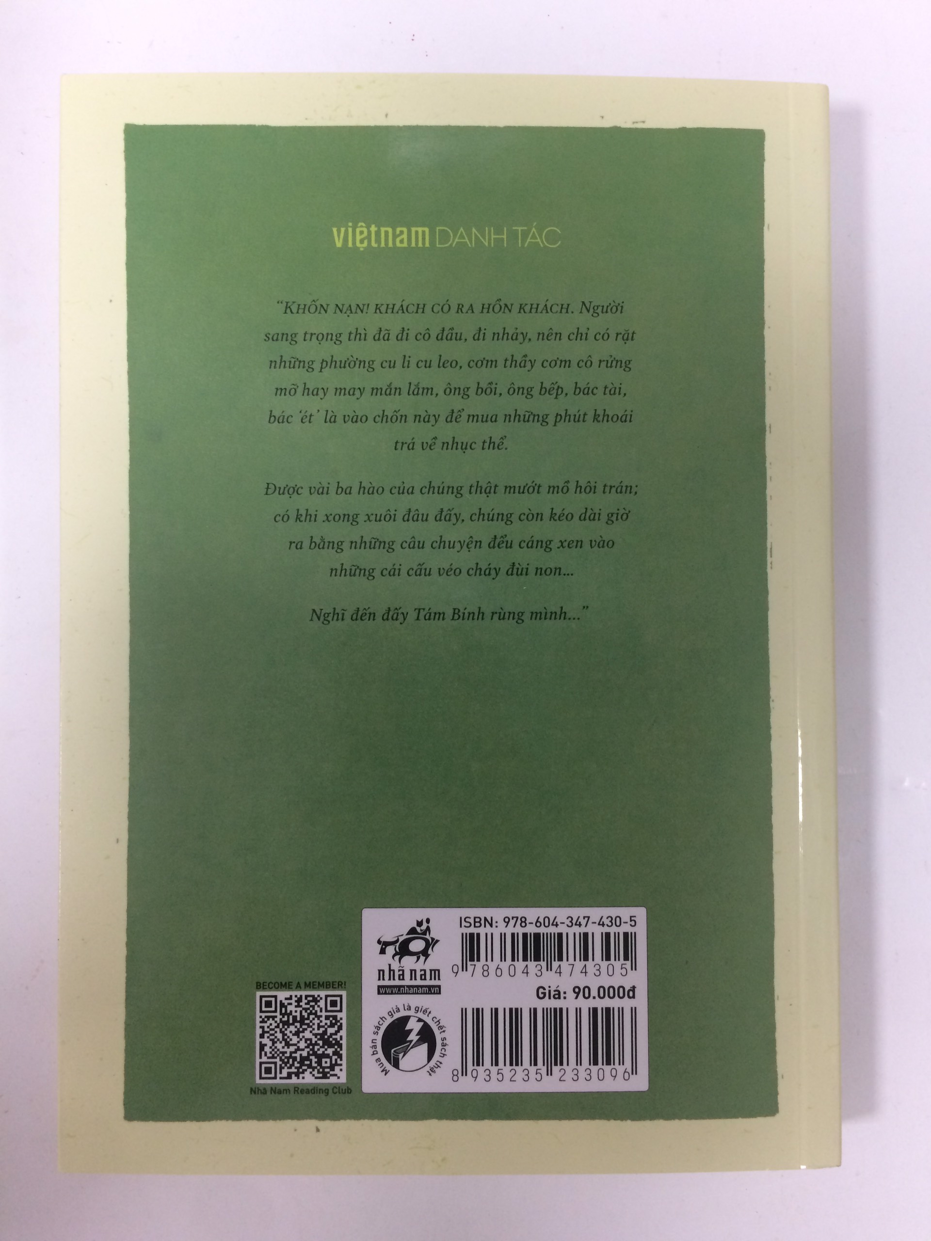 Mua tại TiktokGiới thiệu sách "KHỐN NẠN! KHÁCH CÓ RA HỒN KHÁCH. Người sang trọng thì đã đi cô đầu, đi nhảy, nên chỉ có rặt những phường cu li cu leo, cơm thầy cơm cô rửng mỡ hay may mắn lắm, ông bồi, ông bếp, bác tài, bác ét là ào chốn này để ma những phút khoái trá về nhục thể Được vài ba hào của chúng thật mướt mồ hôi trán; có khi xong xuôi đâu đấy, chúng còn kéo dài giờ ra bằng những câu chuyện đểu cáng xen vào những cá cấu véo cháy đùi Nghĩ đến đấy Tám Bình rùng mì"