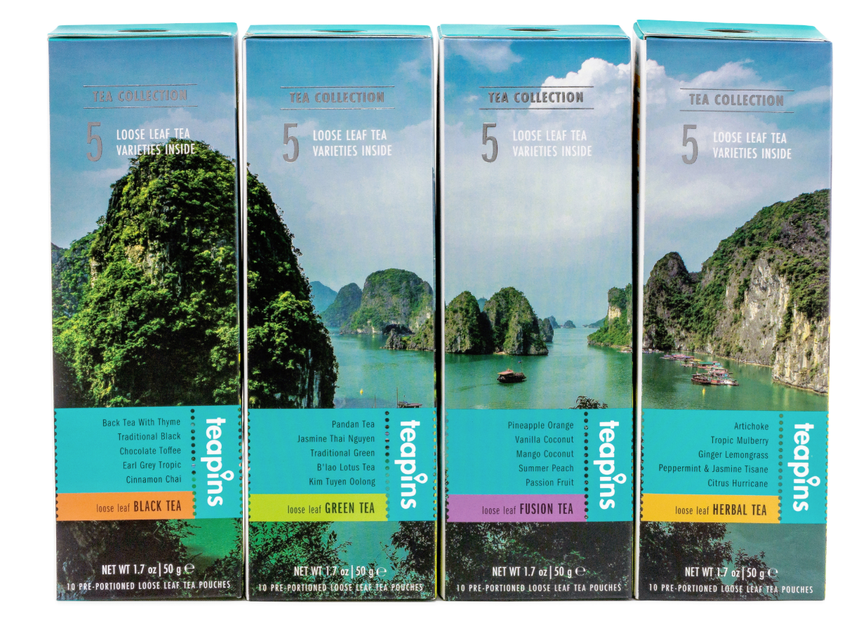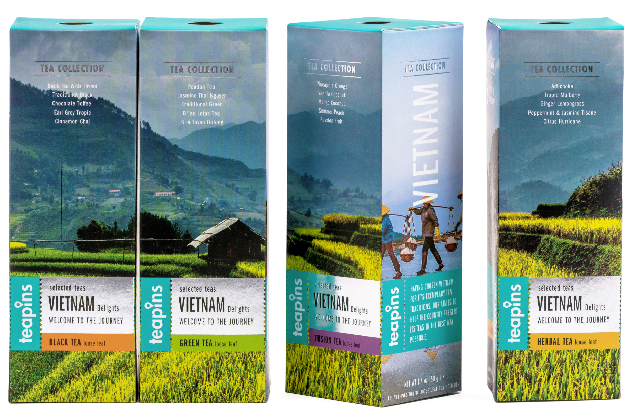 Vietnam Delights Collection. Đó là 5 loại trà độc đáo từ các vùng khác nhau của Việt Nam trong một hộp, có thể ngắm nhìn toàn cảnh những góc đẹp nhất của đất nước. Chúng tôi đã khám phá Việt Nam từ Bắc vào Nam để tìm ra những trang trại trà tốt nhất và thu thập những loại trà tốt nhất cho bạn trong một hộp. Mỗi túi trà được đóng gói kín đáo, cho phép lưu giữ tất cả các lợi ích sức khỏe và hương vị tuyệt vời. Các mô tả về các giống trà và các khuyến nghị về cách pha được ghi chi tiết trên bao bì.