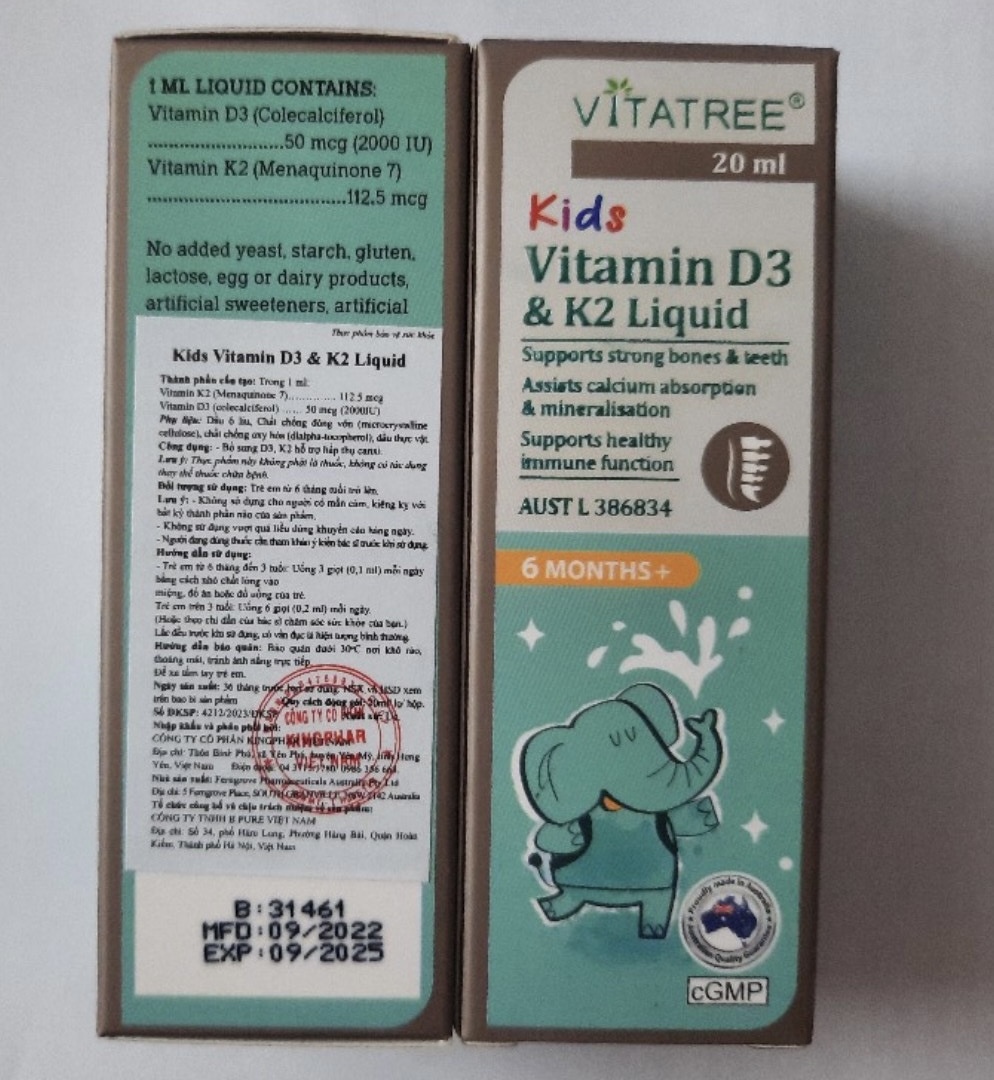 Cả hai loại vitamin D3 và K2 đều hoạt động hiệu quả hơn khi có mặt loại kia. Cùng với nhau, Vitatree Kids Vitamin D3 & K2 Liquid tối đa hóa lợi ích của canxi đối với sự phát triển của xương và tăng cường hệ thống miễn dịch của trẻ.