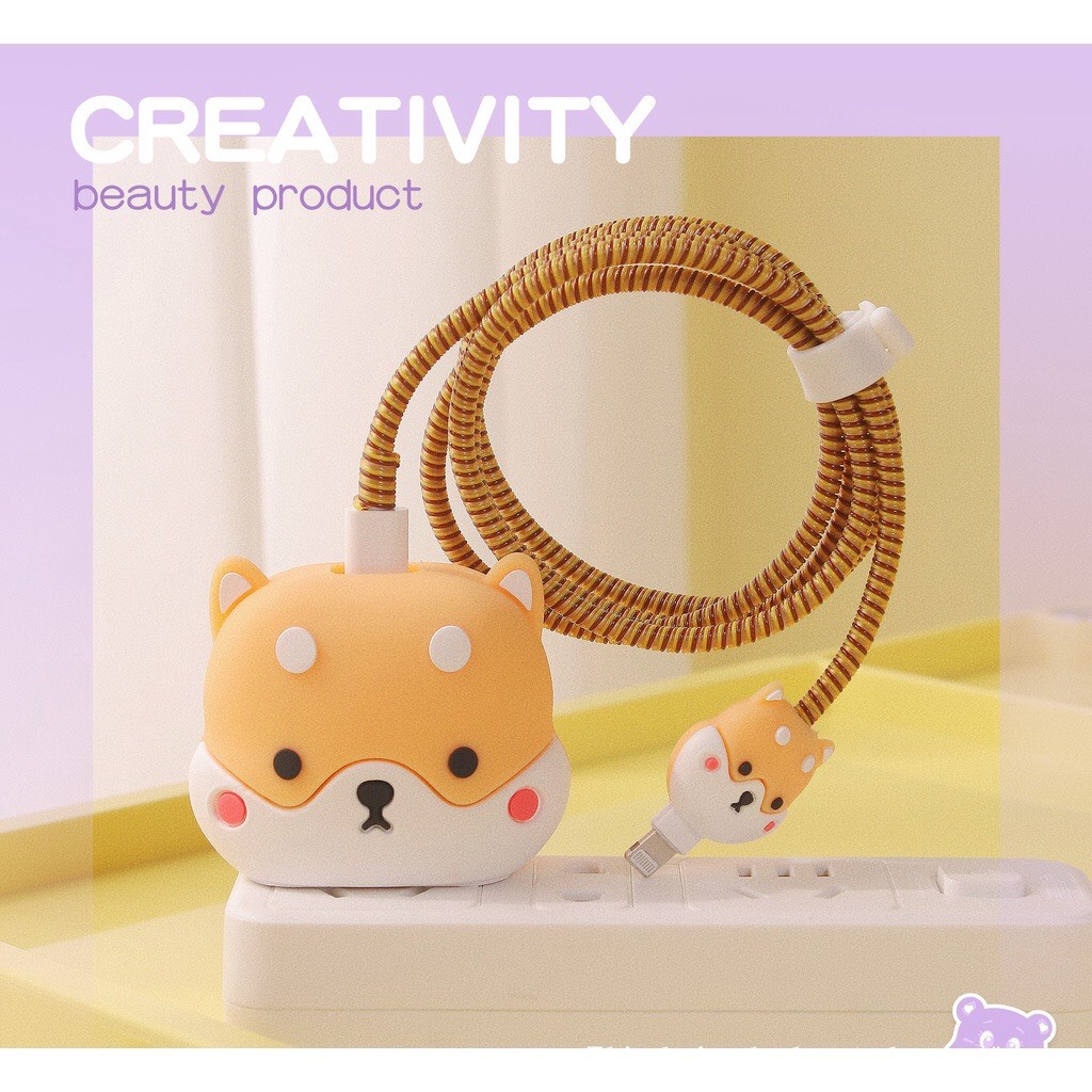 Bộ phụ kiện bảo vệ cáp và củ sạc bằng silicon hình hoạt họa dễ thương cho bộ sạc iPhone 18W và 20W