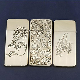 - – Họa tiết: Nhiều hình, giao hình ngẫu nhiên - – Loại bật lửa: Bật lửa xăng đá - – Số ngọn lửa: 1 - – Đánh lửa: Đá lửa - – Nhiên liệu: Xăng - – Tiện ích: Đi gió - – Chất liệu: Kim loại - – Kích thước: 70mm x 33mm x 7,6mm (Siêu mỏng) - – Trọng lượng: ~60g (Chưa bao gồm bao bì) - – Bộ sản phẩm bao gồm: 1 bật