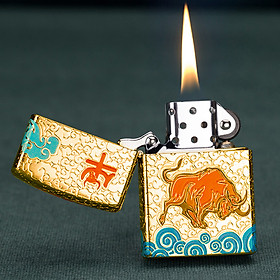 ✨Vỏ Hột Quẹt Bật Lửa Xăng Đá Zorro Z92034B Họa Tiết Con Trâu Đẹp Độc Lạ sang trọng - Dùng Xăng Bấc Đá Cao Cấp